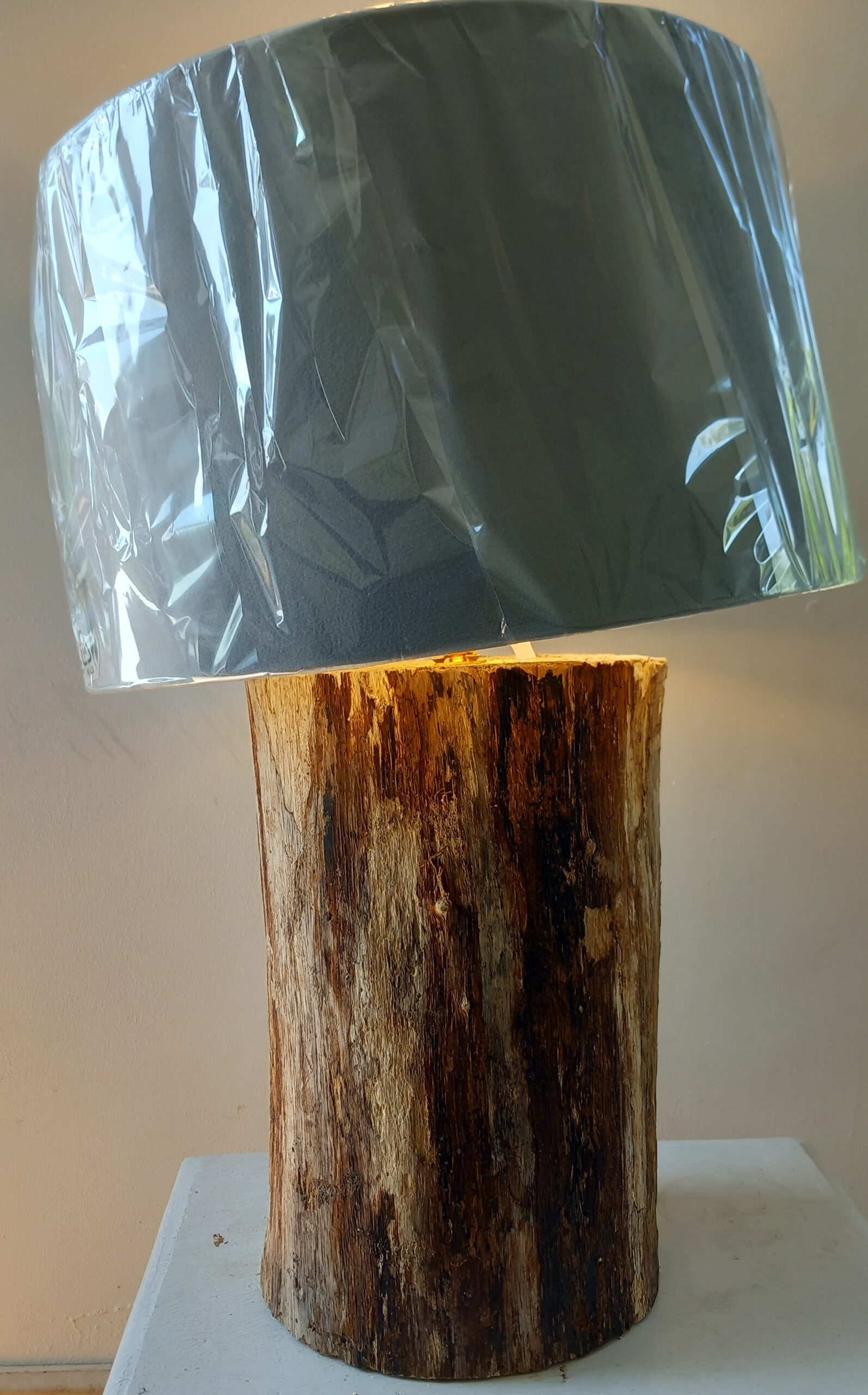 Driftwood Log Lamp. Size may vary slightly but approximately 30.4cm (h) X 23.4cm (w). All Lamps are handmade so as a result unique. This uniqueness makes it impossible for two Lamps to be the same. Lamp is sold without lampshade.