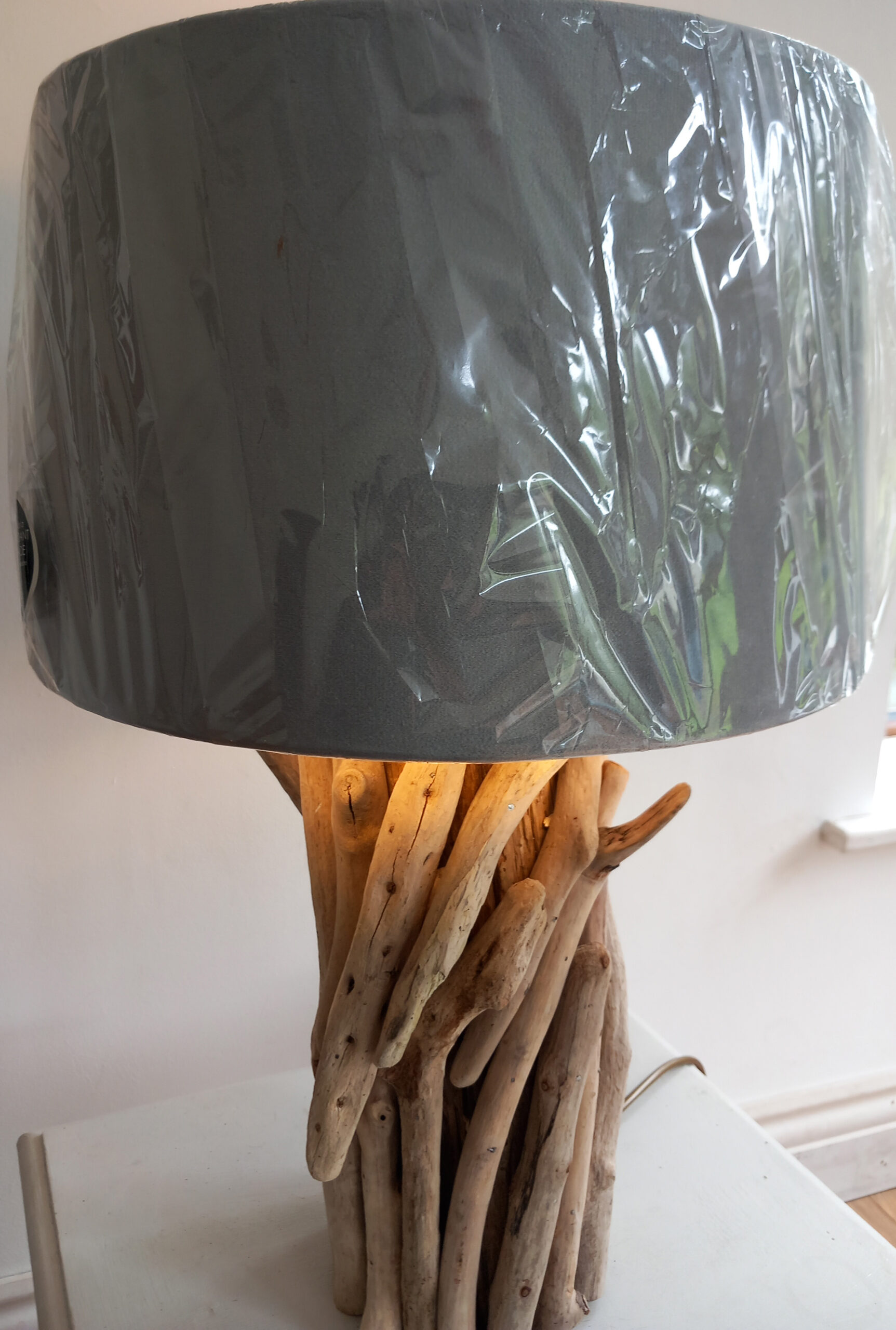 Driftwood Pieces Table Lamp. Size may vary slightly but approximately 30.4cm (h) X 23.4cm (w). Lamp is painstakingly handmade with driftwood pieces attached to make that perfect driftwood Lamp. All products are handmade so as a result unique. This uniqueness makes it impossible for two products to be the same. Lamp is sold without lampshade